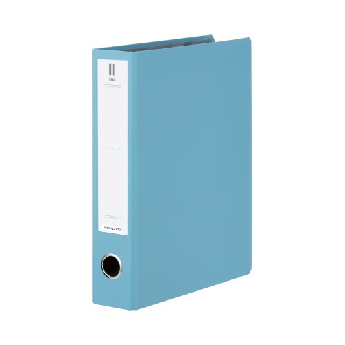 A4縦、背幅65mm、水色のパイプ式ファイル。クリヤーポケットも収まるワイド表紙!約500枚収容。