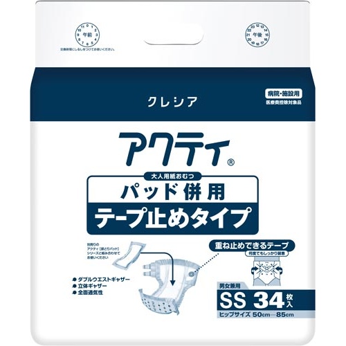 ムレを防ぎ、お肌さらさら。背モレ・腹モレも防ぐテープ止めタイプ。SSサイズ、吸収量800cc。34枚×3パック。