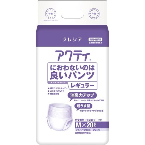 抗菌効果のある超強力消臭シートで気になるニオイを抑制。吸収体スリットで股下にぴったりフィットし、逆戻りを防止。幅広ウエストギャザーで快適なつけ心地。Mサイズ(60-90cm)、吸収量約300cc。