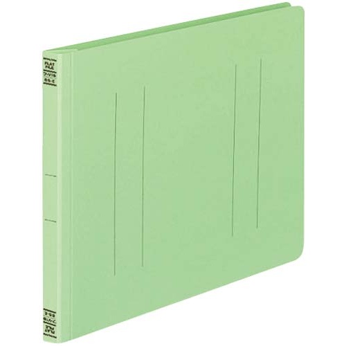 樹脂とじ具で書類がずれにくいB5横型フラットファイルの10冊パック(緑)。