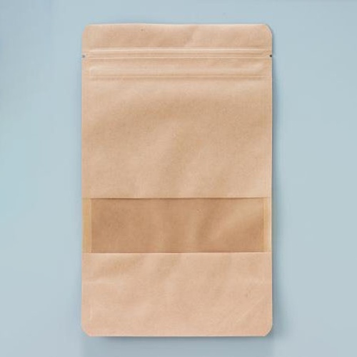 クラフト素材と窓抜きで商品価値を高めるスタンド袋。高い酸素バリア性と防湿性で、食品の長期保存をサポートします。