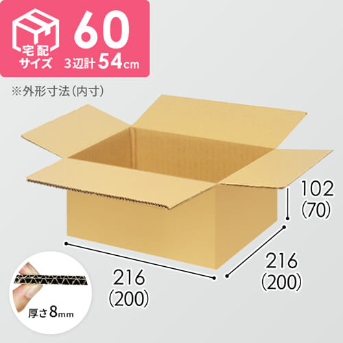 内寸200×200×150mmで、宅配60サイズに対応したダンボール箱。食品・飲料・お酒類を扱うお客様におすすめの仕様です!