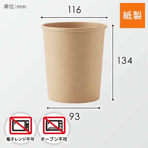 未晒フードカップ。サイズは口径116×底径93×高134mmで、テイクアウトやパッケージに適しています。