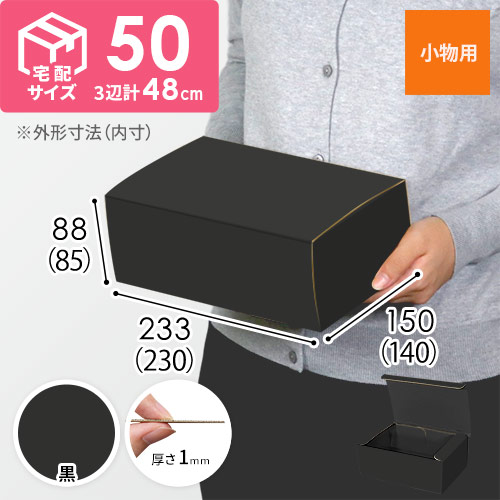 表面に黒色のカラーライナーを使用した宅配60サイズ対応ダンボール箱。高級感ある見た目に仕上がるため、通販商品の発送やパッケージなどにおすすめです。