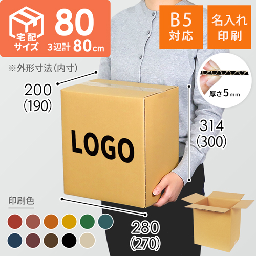 宅配80サイズのダンボール箱に、お客様のロゴや社名などを名入れ印刷します。(B5-80と同サイズ)