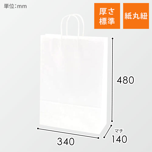 定番規格の2才とカスタム判の中間の大きさの手提げ紙袋。汎用性の高い白色無地でサイズ違いも豊富です。ギフト用や持ち帰り用、ショップバッグに。
