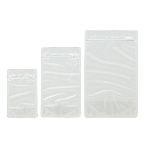 乾燥食品や菓子、ティーパックに最適。店頭映えする日本製チャック付きスタンド袋。乾燥剤も使用でき、開封しやすい加工済みです。