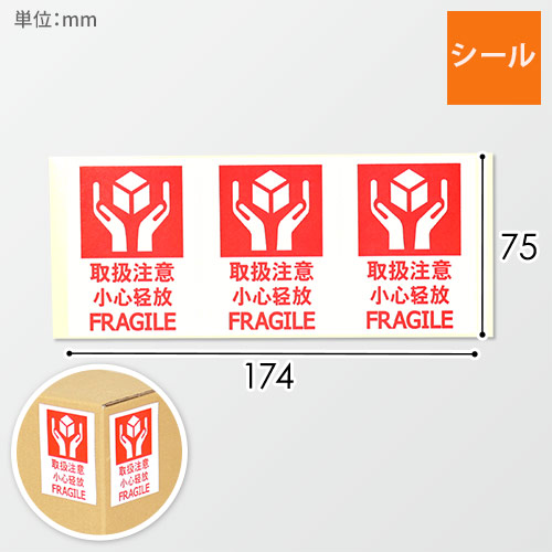 商品を安全に送る!「取扱注意」ケアマークシール。運送会社に荷物を大切に扱うよう促します。ダンボール、宅配袋、メール便ケースなどの発送にご利用ください。