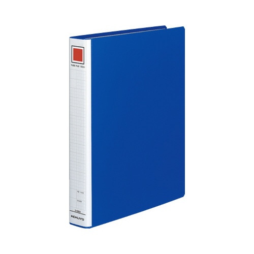 A4横型、青色のパイプ式ファイル。背幅45mm、300枚収容。カラー仕切カード付き。