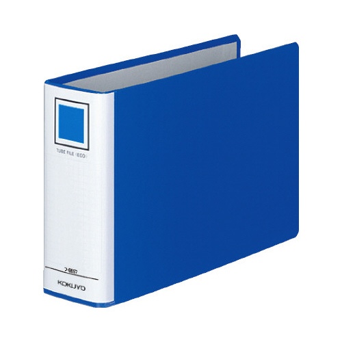 A5横型、青色のチューブファイル3冊セット。背幅65mm、500枚収容可能。