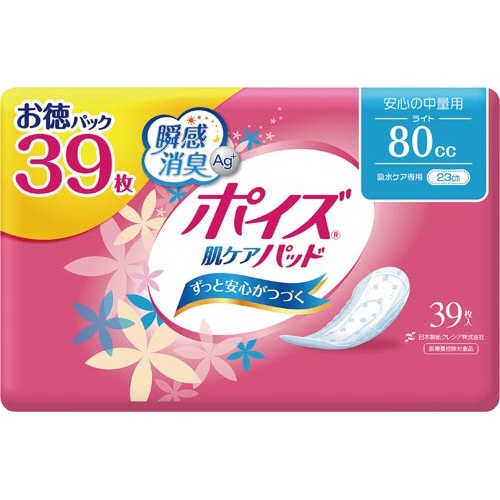 超強力消臭シートでニオイ安心!お肌にやさしい弱酸性シート。80cc吸収。39枚のお徳用パック!
