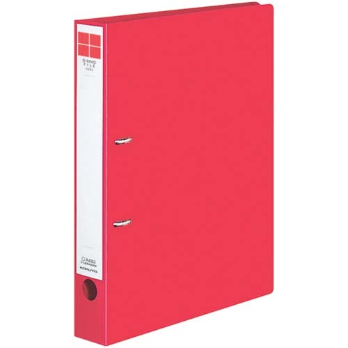 コクヨのDリングファイル(赤、A4縦、10冊セット)。書類の抜き差しが簡単で、300枚まで収容可能。