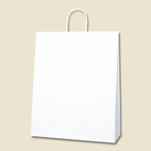 汎用性の高いツヤがある白無地の大型手提げ紙袋。同シリーズ最大丈で、引き出物用や、持ち帰り用、ショップバッグなど様々な用途に使えます。