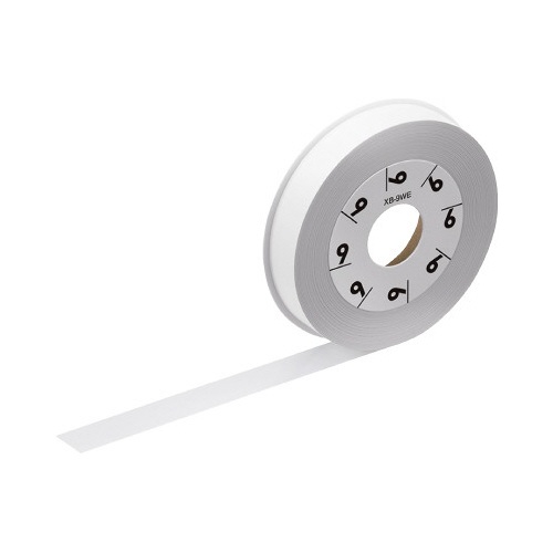 カシオ計算機製LATECO用、白ラベル/黒文字の9mm幅詰め替えテープ。8m巻。