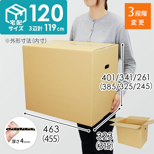 宅配120サイズで発送でき、高さが変えられるダンボール!主要宅配の料金体系に沿ったサイズ調整が可能で、宅配コストや緩衝材を減らすことができます。