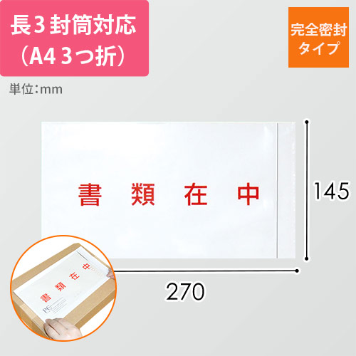 伝票や書類が見つけやすい!ダンボールの外に貼り付けるデリバリーパック。長3サイズがぴったり入るサイズで、安心して書類が送れる完全密封タイプ。