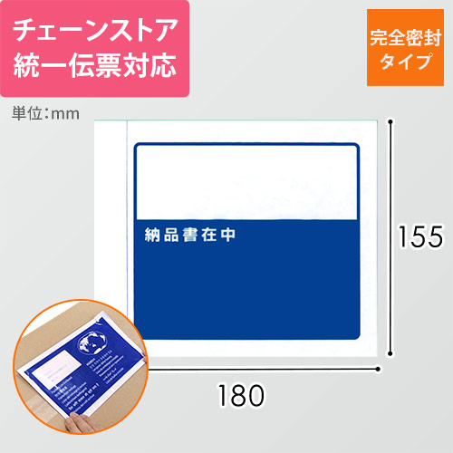 伝票や書類が見つけやすい!ダンボールの外に貼り付けるデリバリーパック。チェーンストア伝票 2つ折サイズサイズがぴったり入るサイズで、安心して書類が送れる完全密封タイプ。