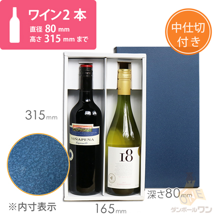 ワイン・一升瓶2本を手軽に梱包。高級感のあるギフトBOX(ネイビー)です。