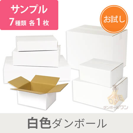 白色定番段ボール7種各1枚(7枚)のお試しセットです。※MS-A4-60、MS-A4-80、MS-A3-100、M-50S、M-60S、M-80S、M-100Sの7種類