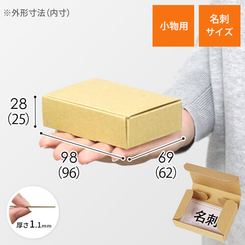 名刺やカードなどの小物の梱包に最適なダンボール箱です。長3封筒などに入れて定形外郵便(規格内)で発送できます。