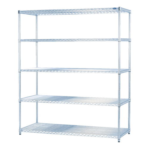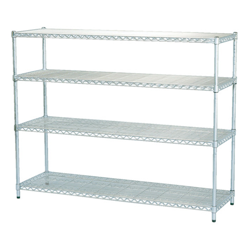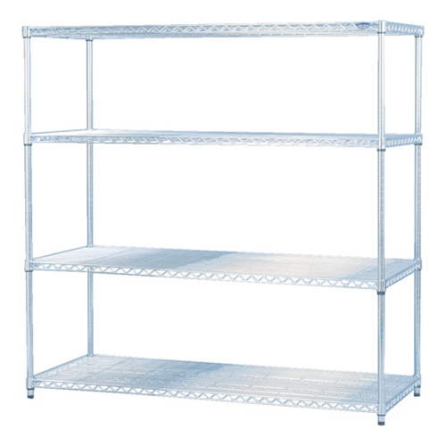 商品や資材を収納する物流用品。メッシュ構造でほこりがつきにくく通気性のよい物品棚です。