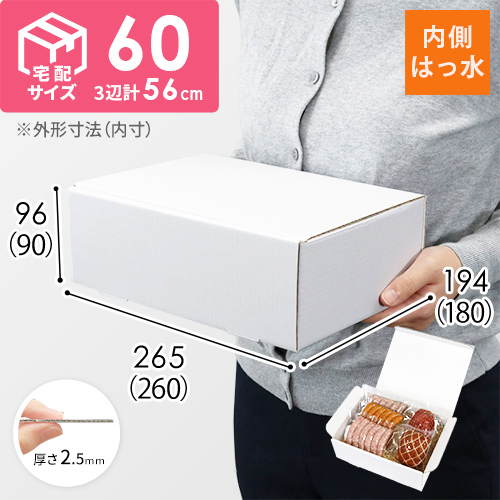 深さ9cmの白色ダンボール箱です。内側はっ水加工の為、冷蔵・冷凍食品のクール便での発送に適しています。