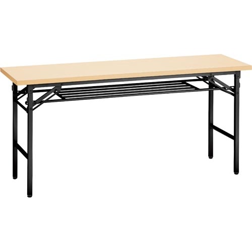 落ち着いた空間にもマッチするブラック脚の折りたたみテーブル。幅1500×奥行450×高さ700mm。