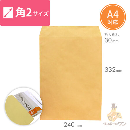 A4クリアファイルが入る、薄手の角2封筒。色はクラフトで、シンプルな仕様です。カタログや商品の定形外郵便発送にいかがでしょうか。
