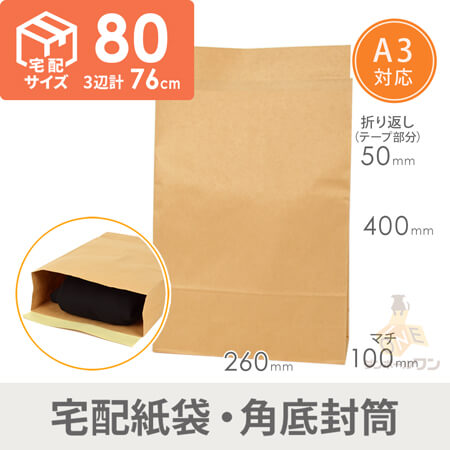 茶無地・マチ付き・テープ付き宅配袋(角底袋)。洋服や書類の発送に便利です。