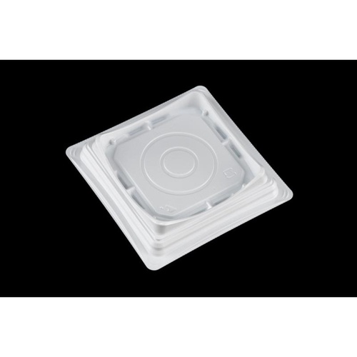 社名やロゴ等のお客様オリジナルデザインを印刷した、底面22.5cm角・深さ8cmの白色ダンボール箱です。