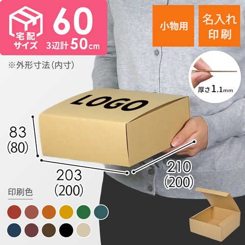 社名やロゴ等のお客様オリジナルデザインを印刷した、深さ10.5cmのダンボール箱です。