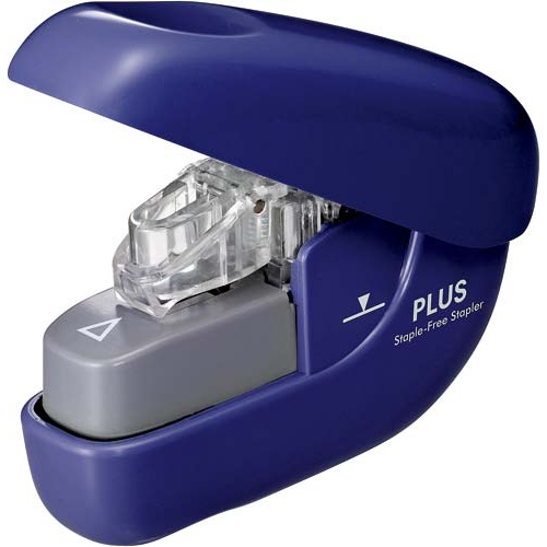 プラスの針なしホッチキス「ペーパークリンチ」。約6枚とじ、ブルー2個セット。再生樹脂を使用!