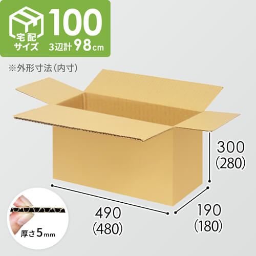 1100×1100mmのパレットに12面×6段積める、納品向けダンボール箱。内寸は480×180×280mmで、宅配100サイズに対応しています。
