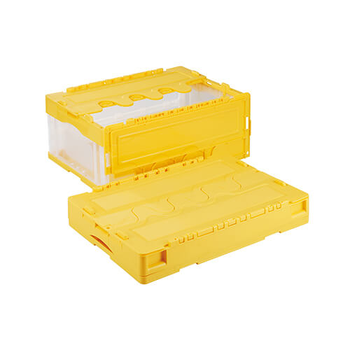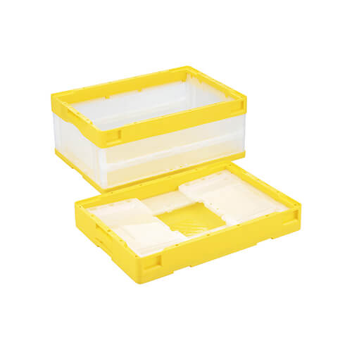 折りたためるコンテナ。耐久性に優れ再利用が可能な為、商品の保管に最適です。