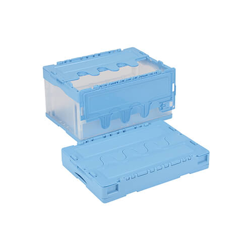 折りたためるコンテナ。耐久性に優れ再利用が可能な為、商品の保管に最適です。