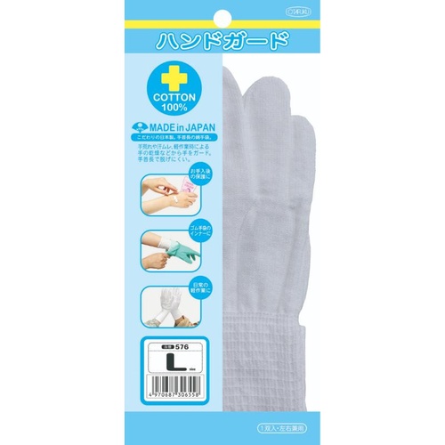 炊事手袋の下ばきや保湿に!手首までカバーする綿100%日本製インナー手袋。従来品より約15cm長いロングタイプ。