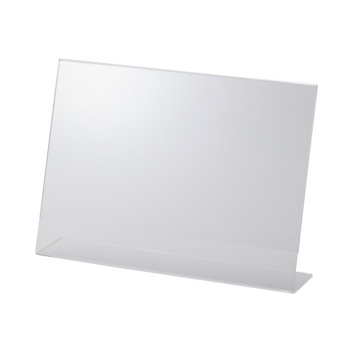 A4横型、クリアなアクリル製サインホルダー。POPを簡単に設置でき、様々なシーンで活躍!