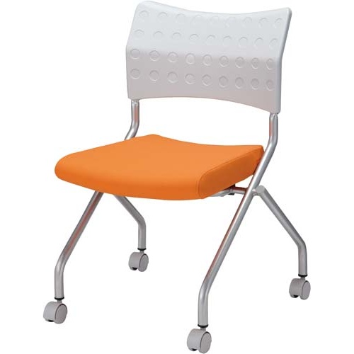 水平スタッキングで省スペース!ウレタン座面で快適なミーティングチェア、2脚セット。