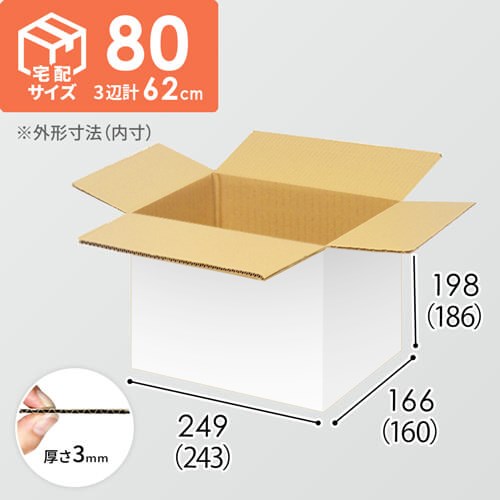 内寸243×160×186mmで、宅配80サイズ対応のダンボール箱。既存の「FBOX-07」が2箱入る大きさで、納品箱などに適しています。