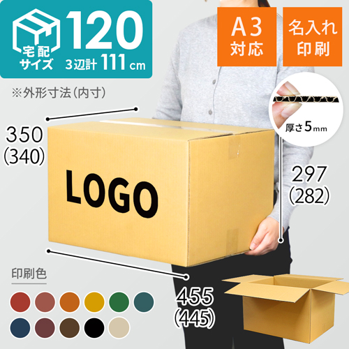 宅配120サイズのダンボール箱に、お客様のロゴや社名などを名入れ印刷します。(AZ-120と同サイズ)