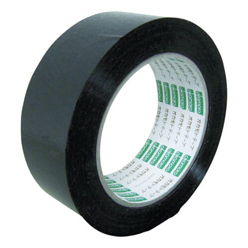 幅48mm×長さ100m×厚さ0.053mで黒色のOPPテープ。梱包物の識別に便利なカラータイプで、耐水性、引張強度、耐衝撃性に優れています。アクリル系粘着剤使用の耐候性があるエコな商品です。中・重梱包用。