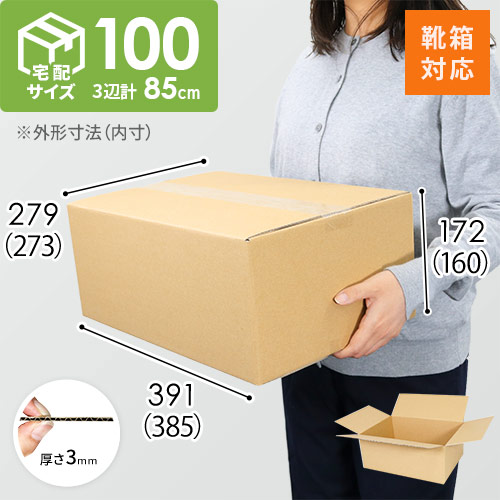 宅配100サイズに対応した靴用の白色ダンボール箱。長さ385×幅273×深さ160mmの靴箱にピッタリなサイズとなっています。靴箱に入れて送る際、宅配袋では不安だというお客様に最適です。