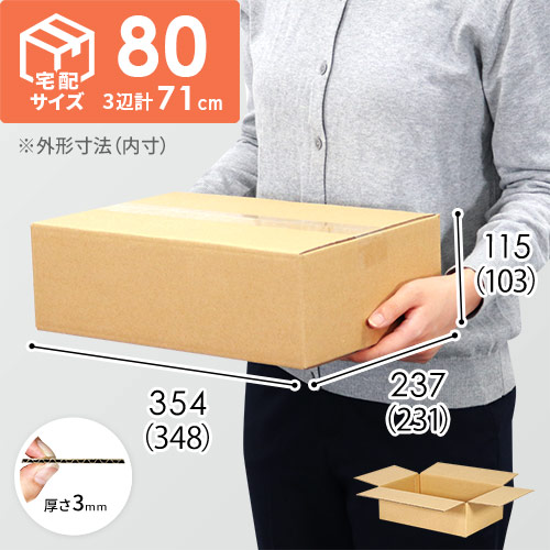 内寸348×231×103mmで、宅配80サイズに対応したダンボール箱。食品・飲料・お酒類を扱うお客様におすすめの仕様です!