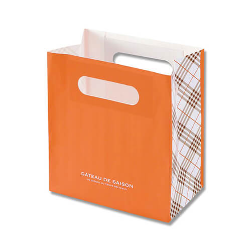 小型の手提げ袋。サイズは幅160×マチ90×高180mmで、テイクアウトやパッケージに適しています。