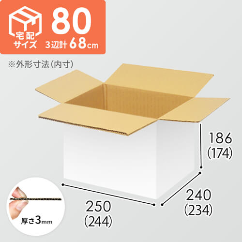 内寸250×210×120mmで、宅配80サイズに対応したダンボール箱。書籍や映像・音楽ソフトを扱うお客様におすすめの仕様です!