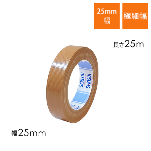 手で切れて丈夫な厚手の布テープ(布製ガムテープ)。25mmの極細幅で細かい部分にピッタリです。パーツの固定や厚みの無い箱の梱包に。