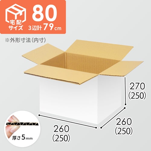 内寸250×250×250mmで、宅配80サイズに対応したダンボール箱。家電製品、AV機器、PC周辺機器を扱うお客様におすすめの仕様です!