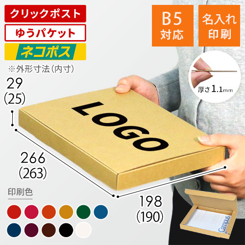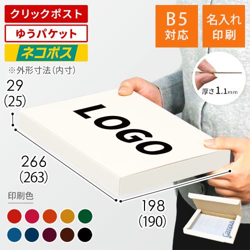 社名やロゴ等のお客様オリジナルデザインを印刷した、クリックポスト・ゆうパケット対応のメール便ケースです。