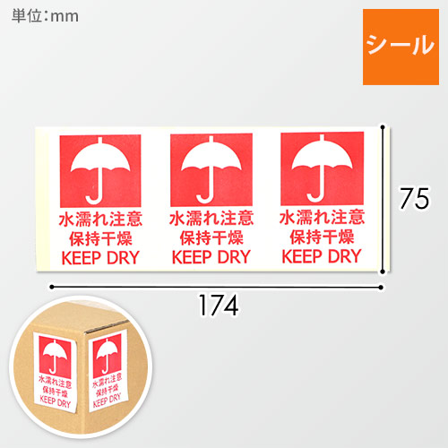 商品を安全に送る!「ぬれもの注意」荷札シール。運送会社に荷物を雨・雪などに濡れないよう促します。ダンボール、宅配袋、メール便ケースなどの発送にご利用ください。