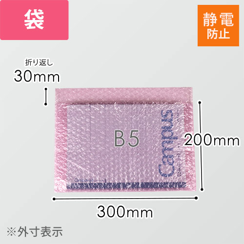 静電気防止機能があるB5サイズのプチプチ平袋。ホコリを寄せ付けず、丈夫で両面フラットな3層構造で、スムーズな商品の出し入れが可能です。